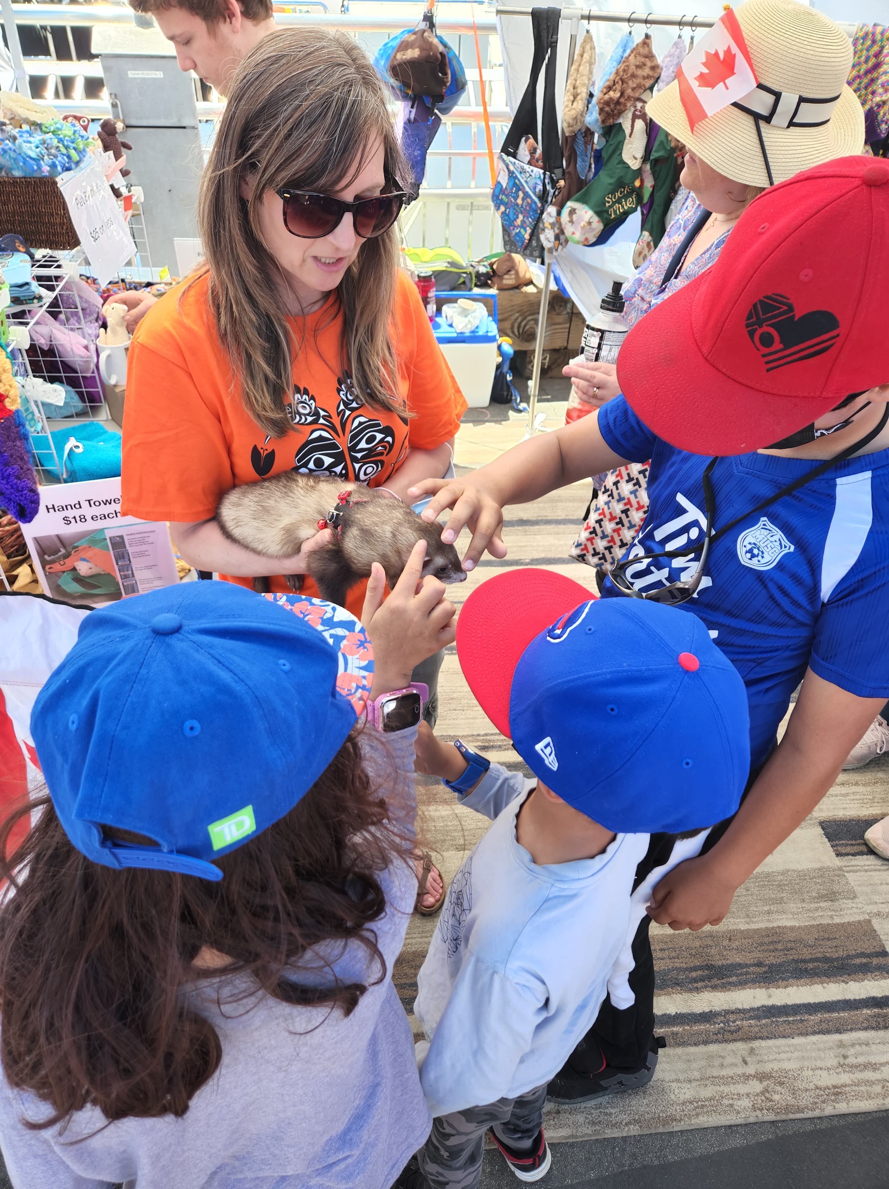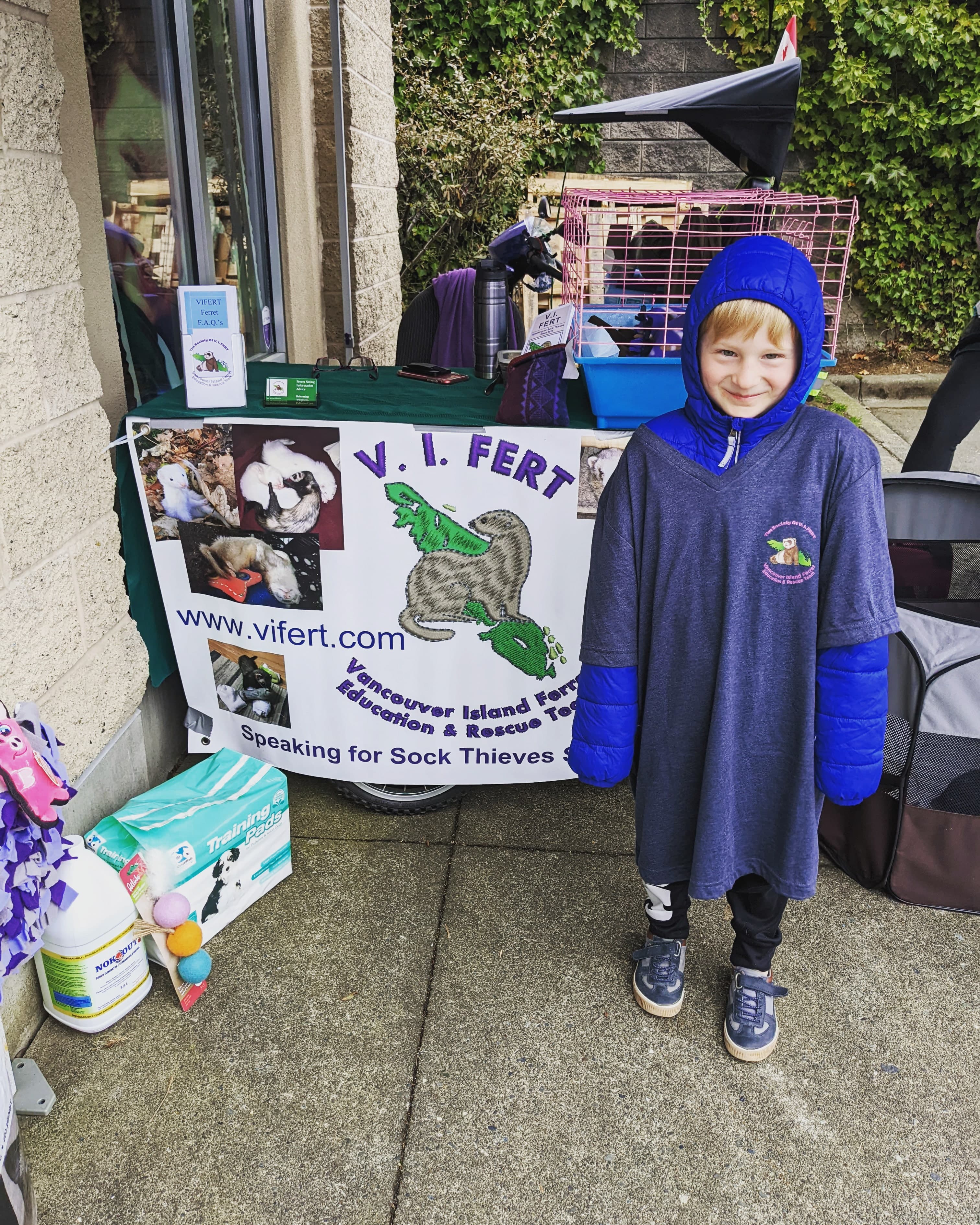 We had an event in Victoria in memorium of a ferret, Missy Toad, had passed. Her owner got in touch with us and asked us to help celebrate Missy Toads life and share our ferrets, ferret love, and education. A good time was had by all. Thanx for having us.