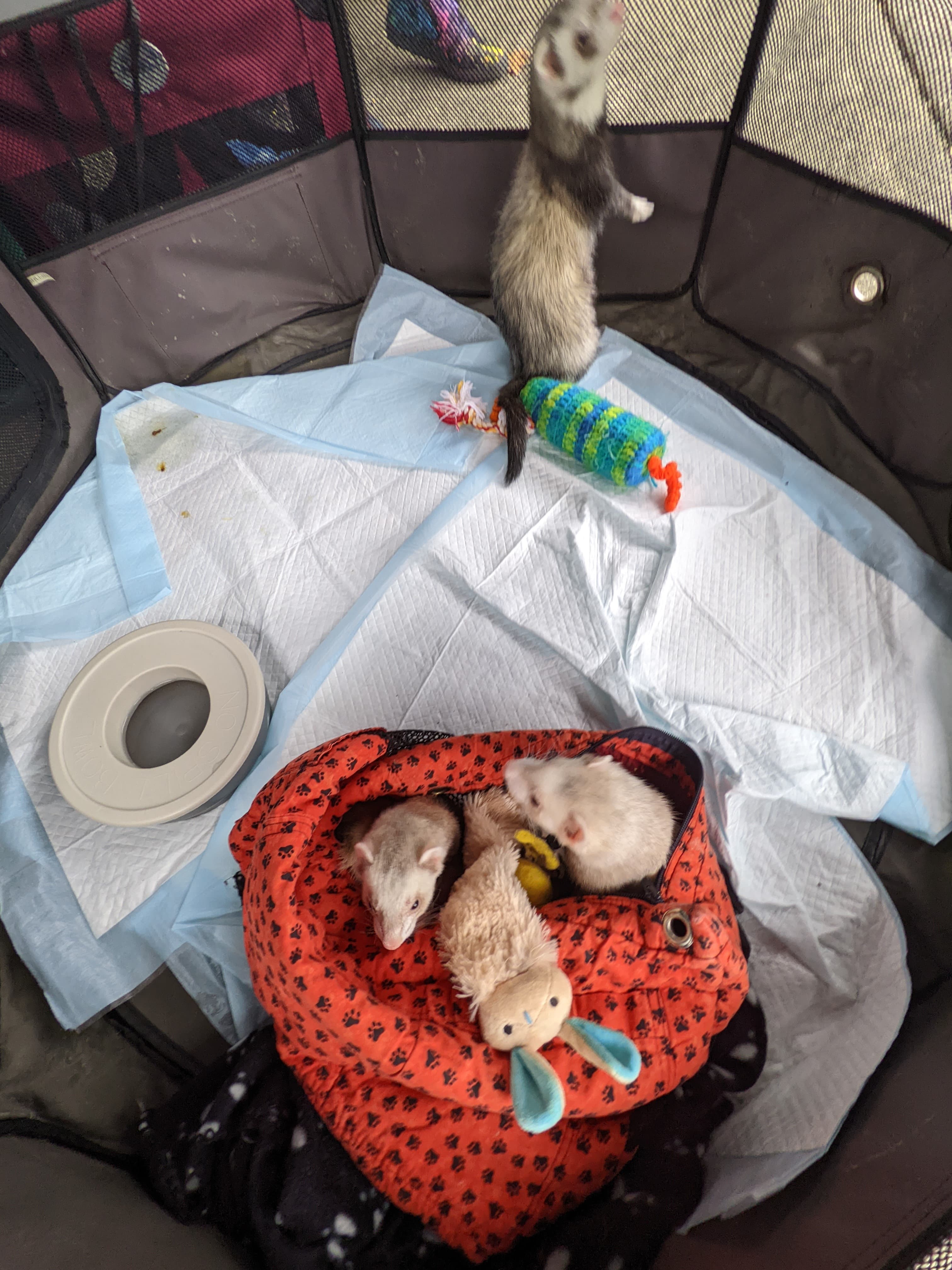 Celebrating a break in Covid, members of V.I.FERT got together for a ferret frolic in Victoria. About 17 people and more than 20 ferrets got together for a wonderful time. Hopefully, this is a precursor to future events for the public.